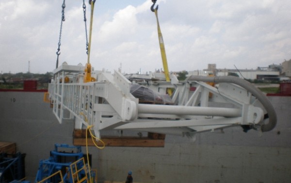 UN EQUIPO VIBRADOR SIENDO CARGADO EN BUENOS AIRES PARA IR A PALMAR LARGO.